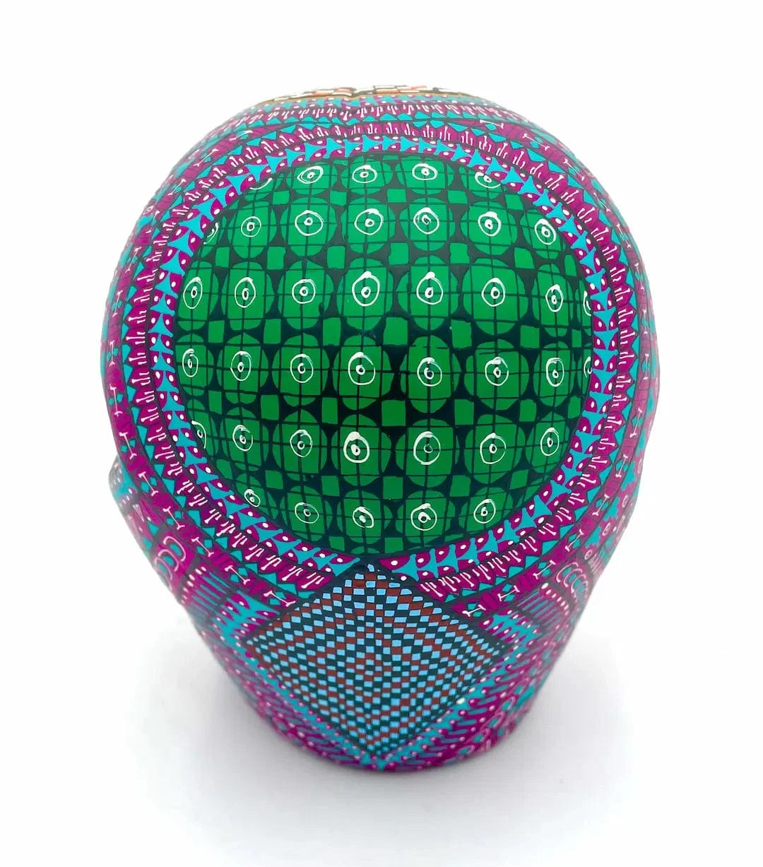 Intricate hand-painting using natural pigments and pre-Hispanic symbols.